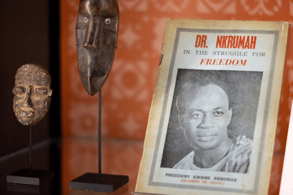 - Allie Barton, Image of Nkrumah Pamphlet Cover, 2025, Photograph, “Street Talk: Exhibition explores the literary pulse of early post-colonial Nigeria,” https://news.yale.edu/2025/05/13/street-talk-exhibition-explores-literary-pulse-early-post-colonial-nigeria. ↩︎