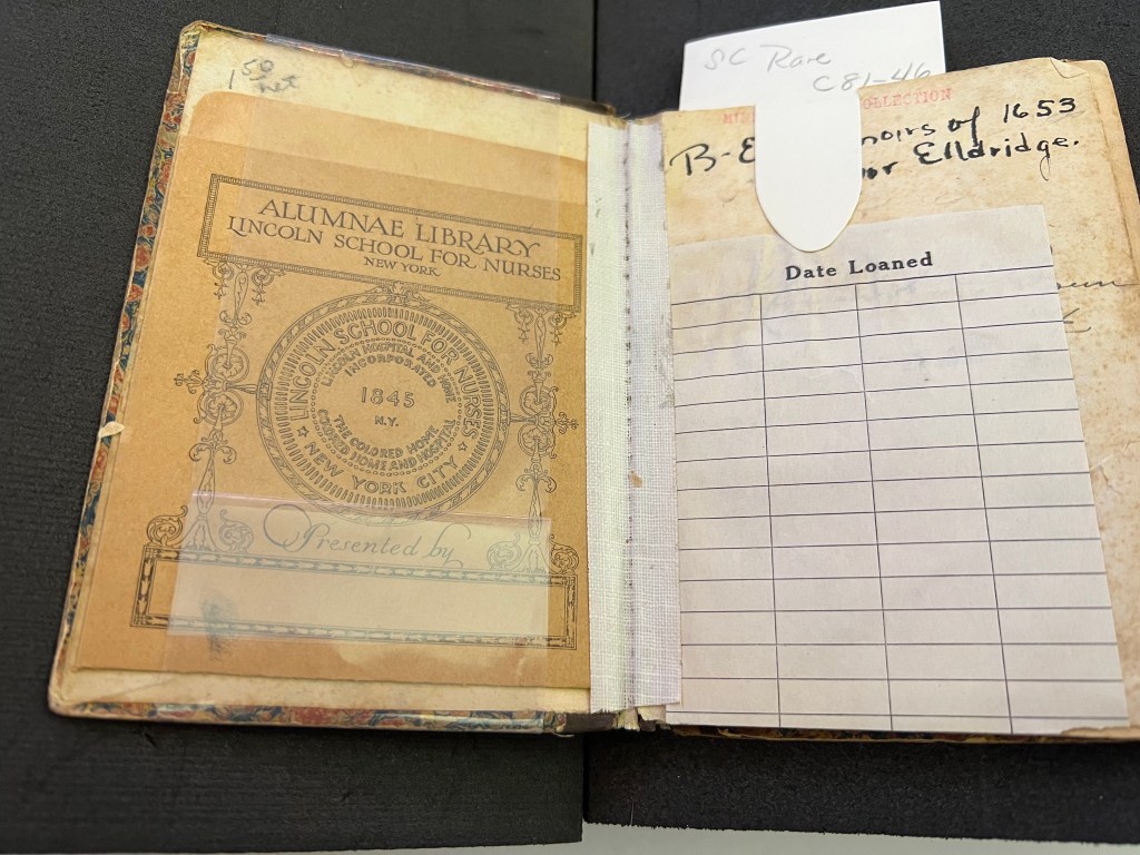 “Lincoln School for Nurses in New York’s Alumnae Library Seal, ” Memoirs of Eleanor Eldridge, Manuscripts, Archives and Rare Books Division, Schomburg Center for Research in Black Culture, The New York Public Library.
