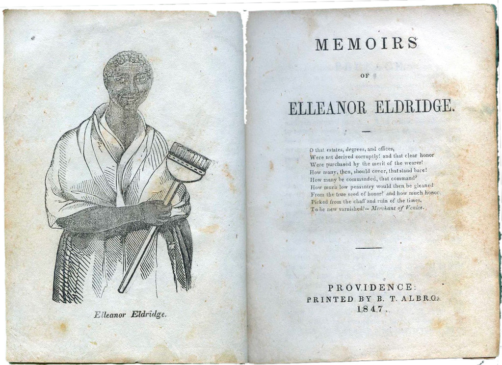 Eldridge, Elleanor and Frances H. Green. Memoirs of Elleanor Eldridge. Providence: B.T. Albro, 1846. Schomburg Sc-Rare B-Eldridge, Archives and Rare Books Division, Schomburg Center for Research in Black Culture, The New York Public Library.